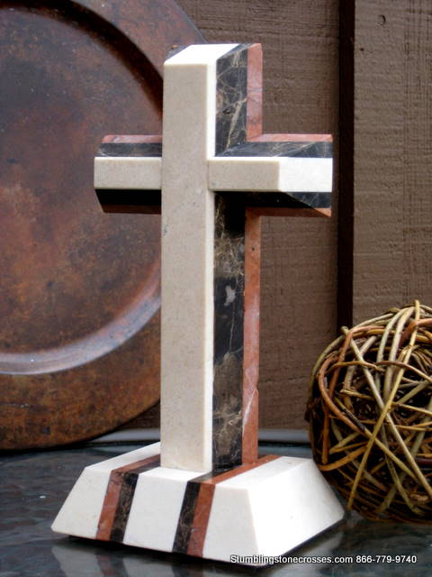 Standing Granite Cross for Tabletop – Layered 3 color, Angled