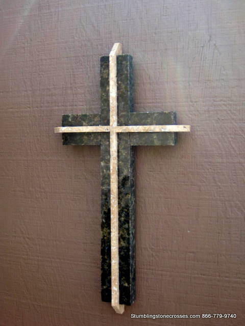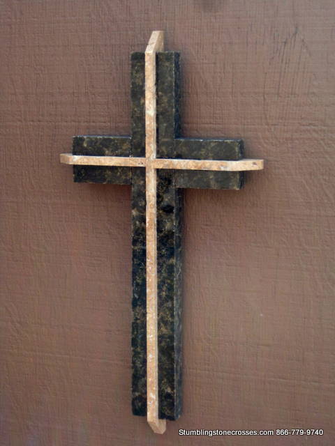 Brown Granite Wall Cross, Travertine Accents- Dimensional