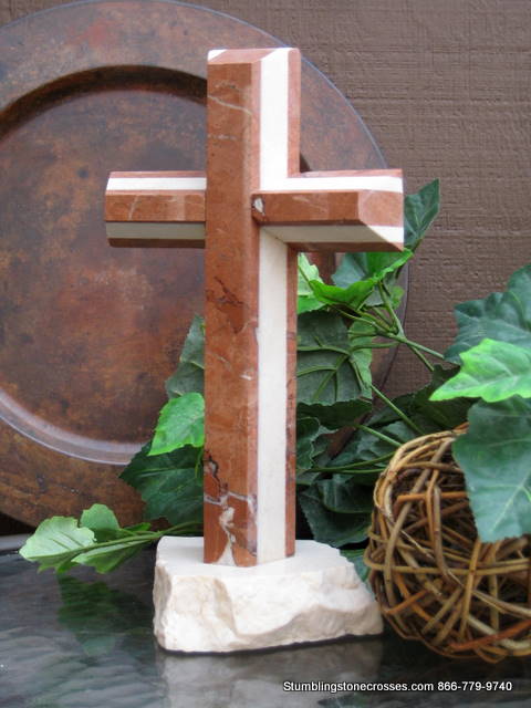 Standing Granite Cross for Tabletop - Terra Cotta, Ivory