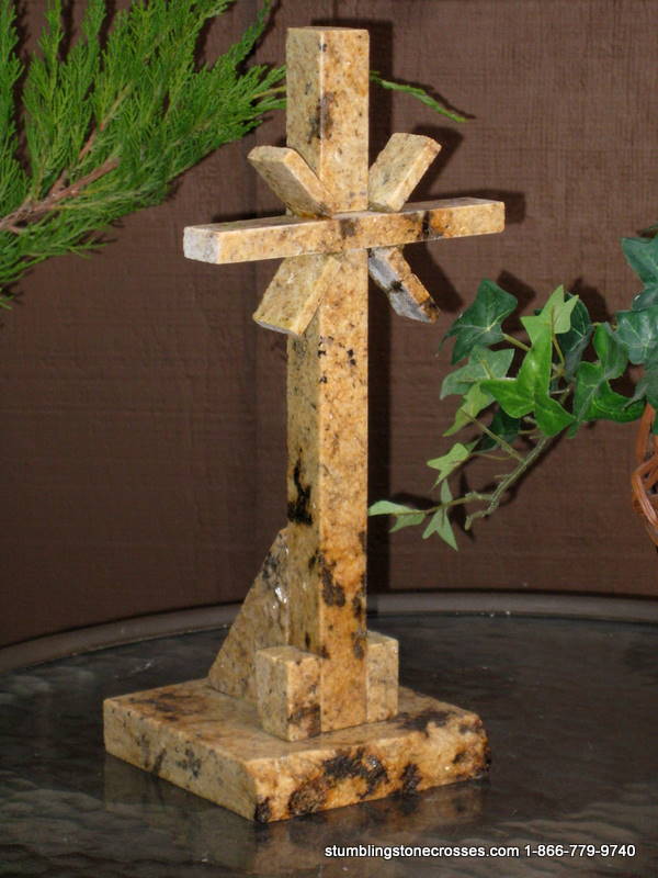 Standing Granite Cross for Tabletop - Golden With “Sonburst” Flares