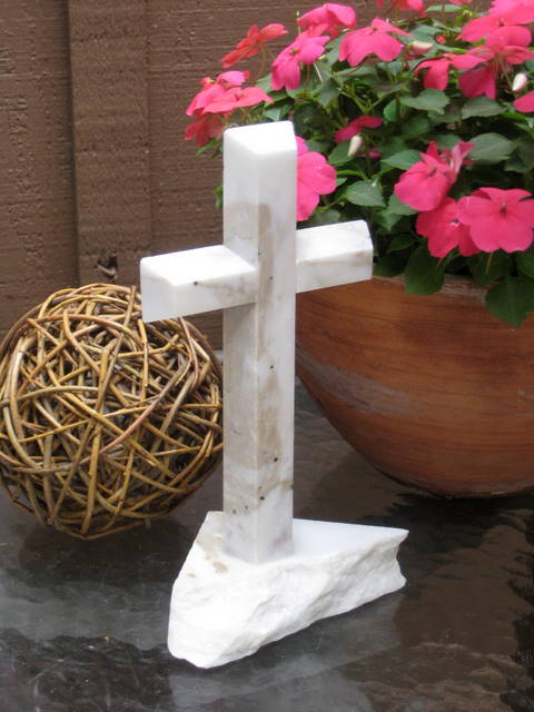 Sold Crosses > Standing Marble Cross for Tabletop - White Marble, Broken Base