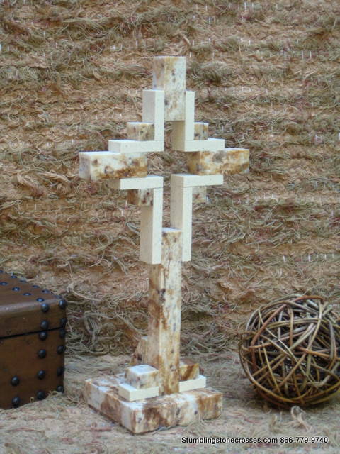 Sold Crosses > Standing Travertine Cross- Golden Travertine Hollow With Ivory