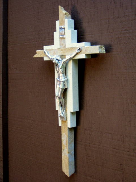 Sold Crosses > Travertine Wall Crucifix - Golden Travertine Ivory Accent Pieces - 1