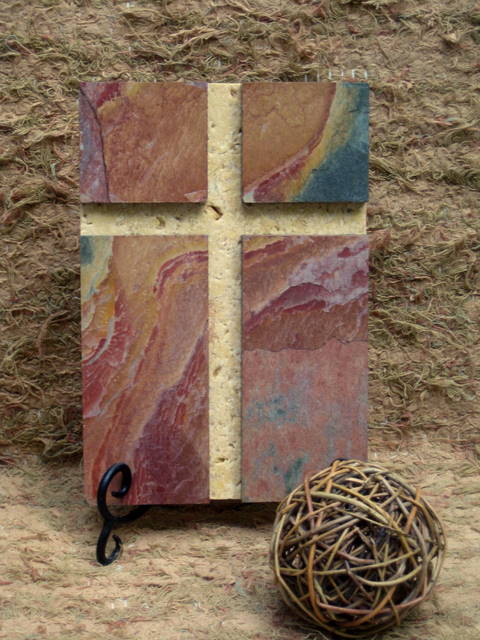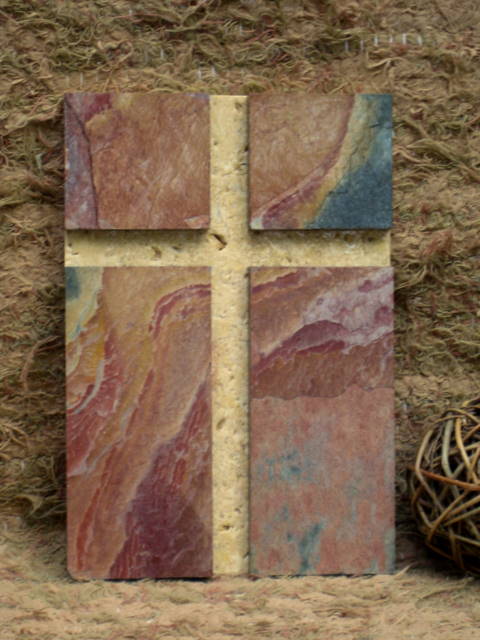 Wall Cross Plaque - Golden Travertine and Red Slate