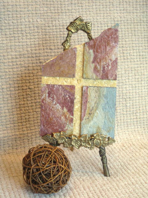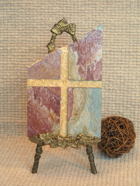 Wall Cross Plaque - Golden Travertine and Red Slate Broken Edge